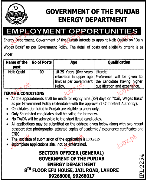 Apply as per details in job advertisement. Login to view further details of how to apply via https://www.jobz.pk online.