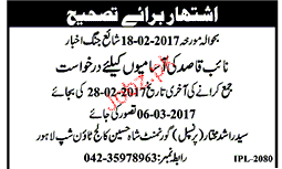 Apply as per details in job advertisement. Login to view further details of how to apply via https://www.jobz.pk online.