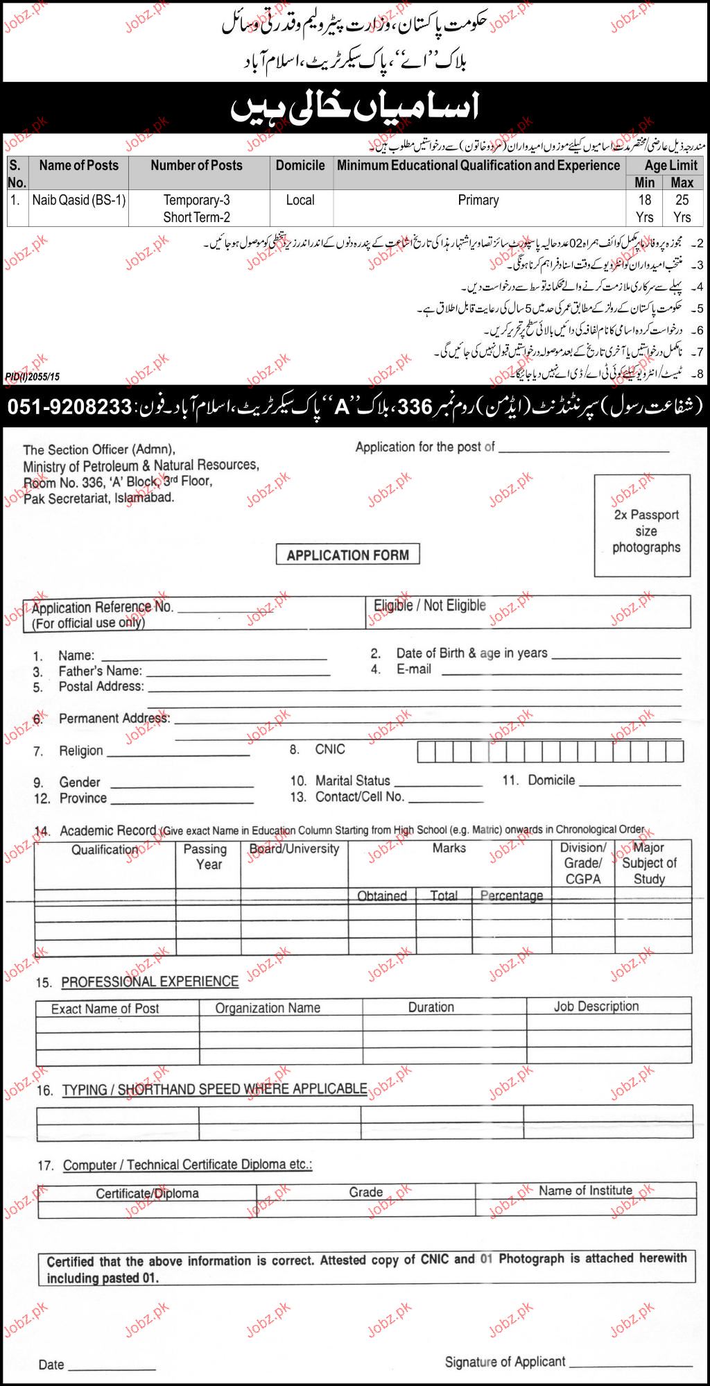 Naib Qasid Job in Ministry of Petroleum