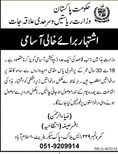 Apply as per details in job advertisement. Login to view further details of how to apply via https://www.jobz.pk online.