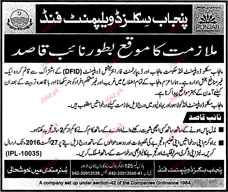 Apply as per details in job advertisement. Login to view further details of how to apply via https://www.jobz.pk online.