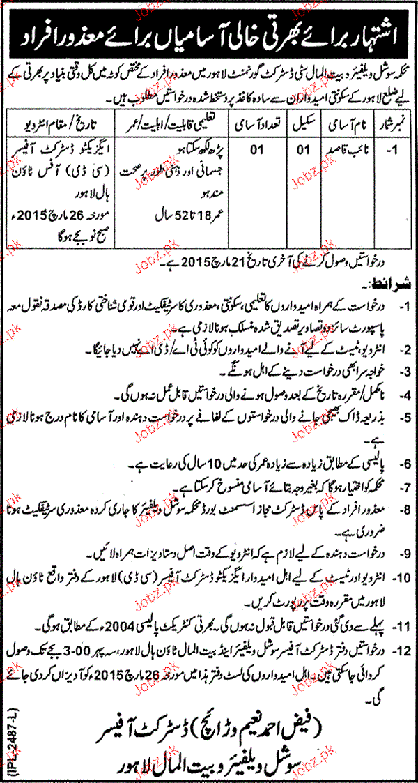 Apply as per details in job advertisement. Login to view further details of how to apply via https://www.jobz.pk online.