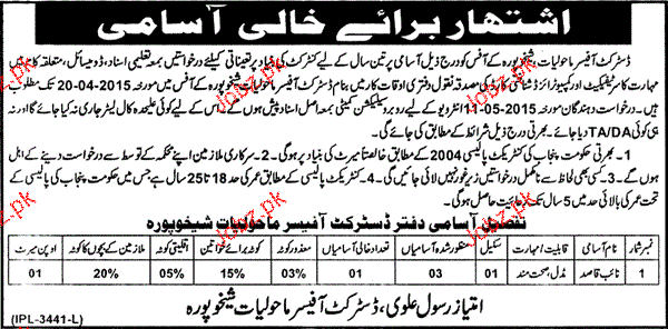 Latest District Government Posts Sheikhupura 2025