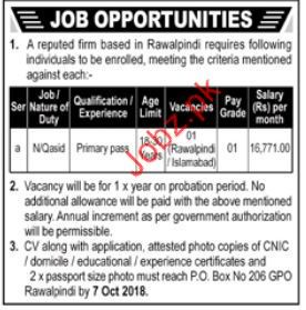 Apply as per details in job advertisement. Login to view further details of how to apply via https://www.jobz.pk online.