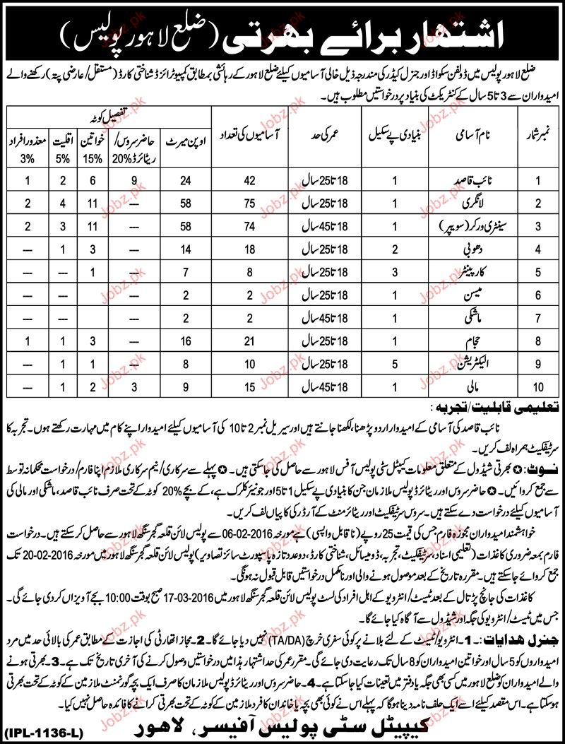 Naib Qasid, Langree, Mason, Carpenter Job in Punjab Police