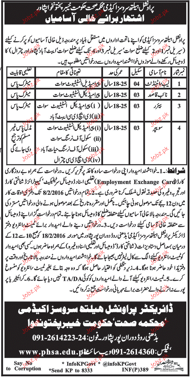 Naib Qasid, Sweepers and Lab Attendants Job Opportunity