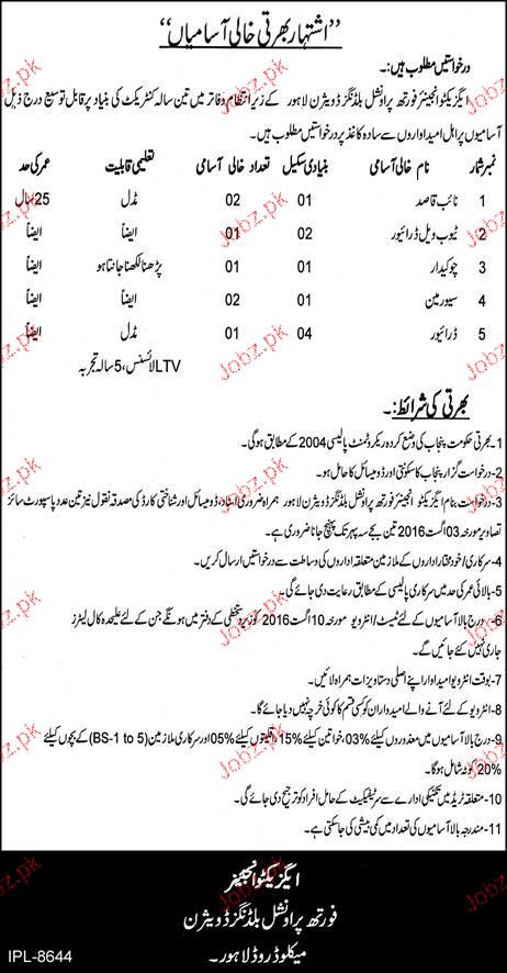 Naib Qasid, Tube well Operators, Chawkidars Wanted