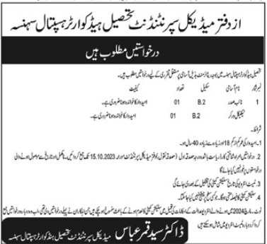 Naib Saddar & Technical Worker Jobs in THQ Hospital