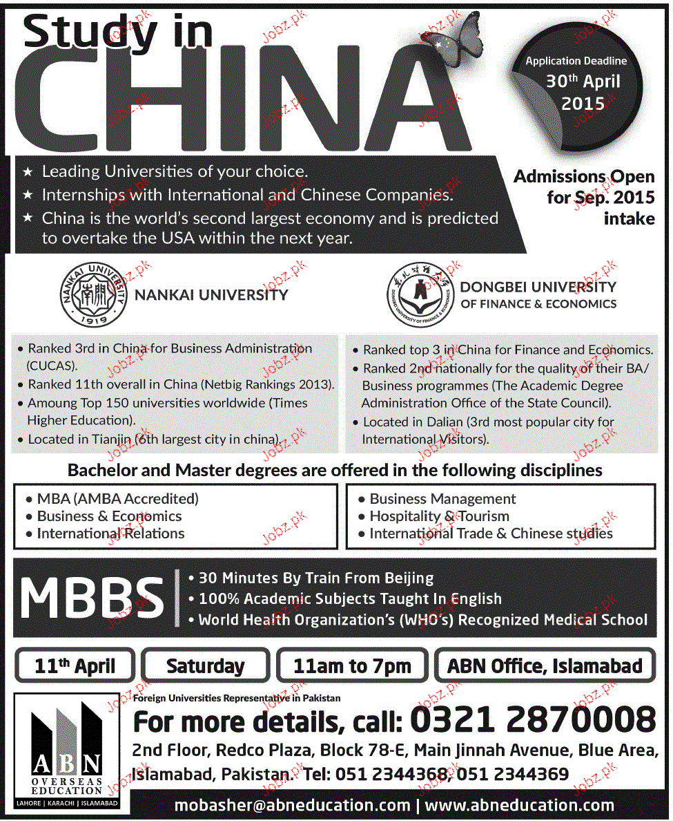 Nankai University Admission in MBBS in China. Read newspaper ad for exact details.