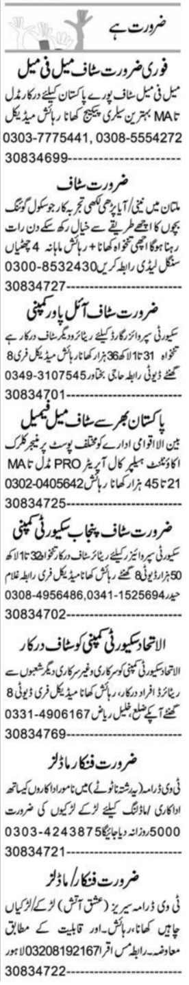 Vacant posts including nanny, call operator, accountant, security guard, office staff, helper, model, public relation officer, pro, security supervisor, actor, manager, aya and clerk are announced in Private Company Multan, multan Punjab Pakistan as per 18 November 2022 advertisement in daily Express Newspaper. Bachelor, Middle, Matric and Intermediate etc. educational qualification will be preferred.