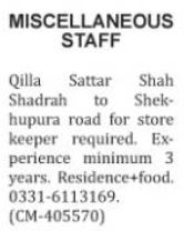 Private Company jobs advertisement dated about 15 September 2025 in daily Nation Newspaper invites application for the vacant post of store keeper in Shahdara Lahore, lahore Punjab Pakistan. Matric and Intermediate etc. educational qualification will be preferred.