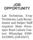Hospital Clinic jobs advertisement dated about 4 November 2024 in daily Nation Newspaper invites application for the vacant post of receptionist, lady receptionist, lab technician, x ray technician and helper staff in Lahore, lahore Punjab Pakistan. BA, DAE, Intermediate, Bachelor and Matric etc. educational qualification will be preferred.