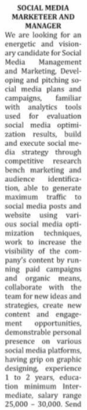 Private Company latest Classifieds Management jobs and others can be applied till February 19, 2022 or as per closing date in newspaper ad. Read complete ad online to know how to apply on latest Private Company job opportunities.