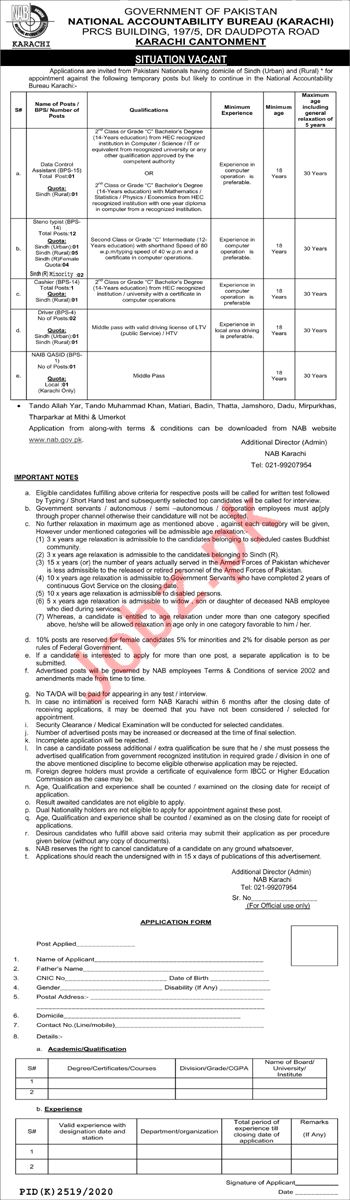 Vacancies in National Accountability Bureau NAB Advertisement March 2021