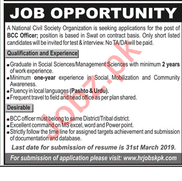Latest National Civil Society Organization NGO Posts Peshawar 2025
