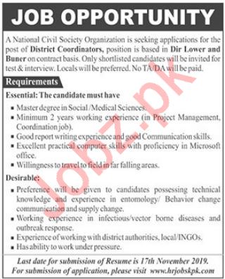 National Civil Society Organization NGO Jobs In Buner KPK