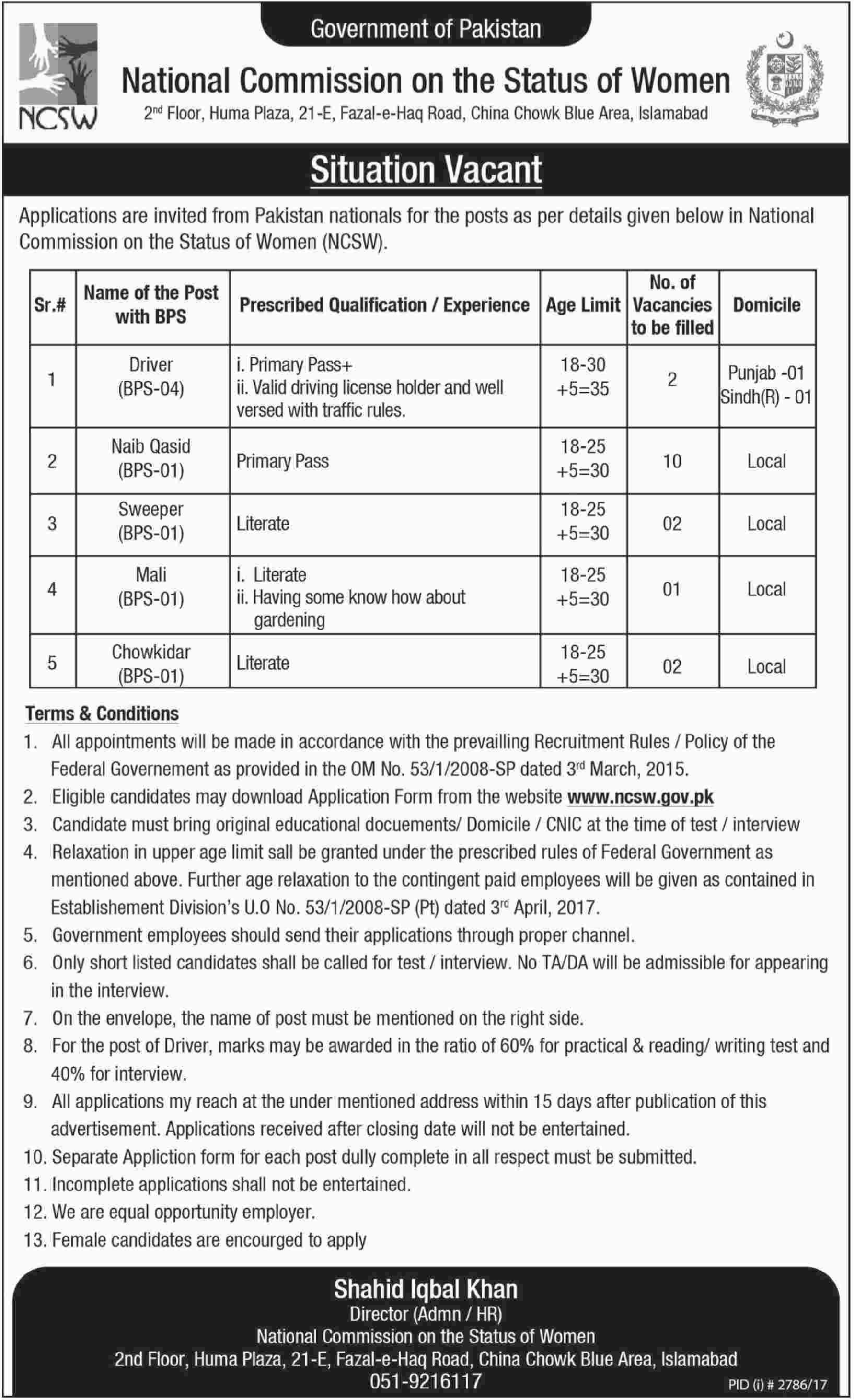 Latest National Commission on the Status of Women Posts Islamabad 2025