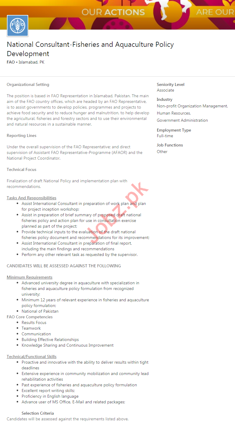 Latest Food & Agriculture Organization FAO Management Posts Islamabad 2025