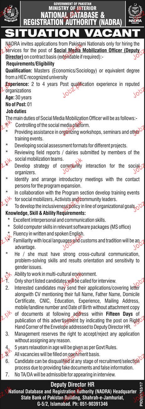 Apply as per details in job advertisement. Login to view further details of how to apply via https://www.jobz.pk online.