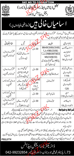 Latest National Database & Registration Authority NADRA Management Posts Lahore 2025