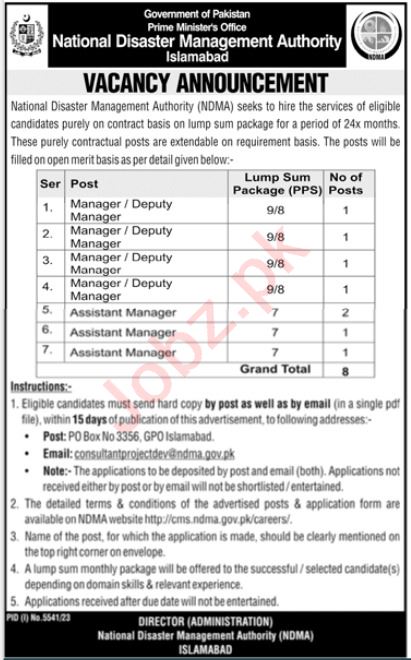 Vacancies in National Disaster Management Authority Advertisement March 2024
