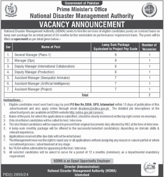 How to Apply on National Disaster Management Authority Job Advertisement