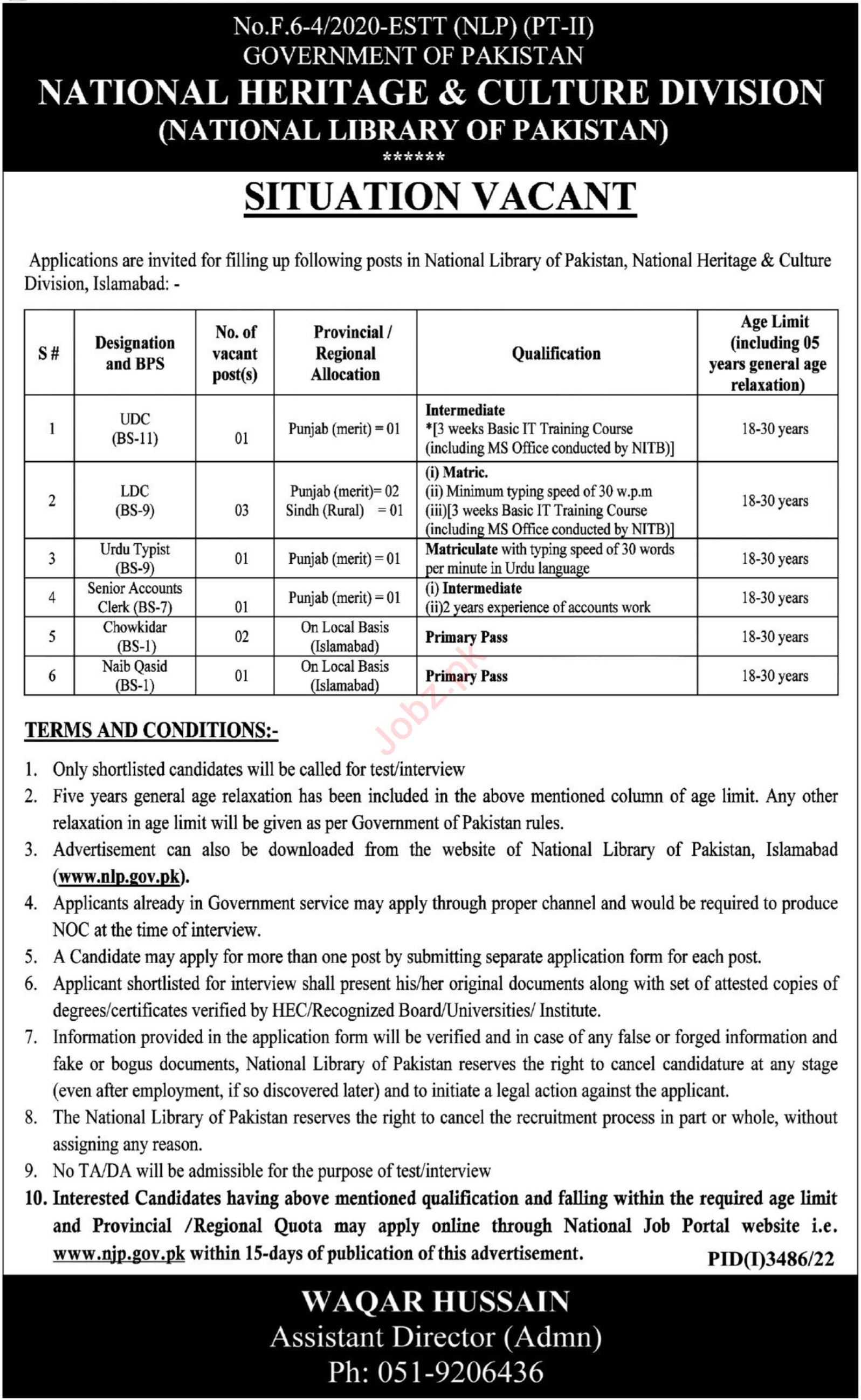 National Heritage & Culture Division invites applications for job positions advertised in daily Express Tribune dated 4 December 2022 for following vacancies in Islamabad, islamabad Islamabad Pakistan.
