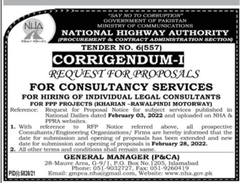 National Highway Authority NHA Jobs 2022 Corrigendum
