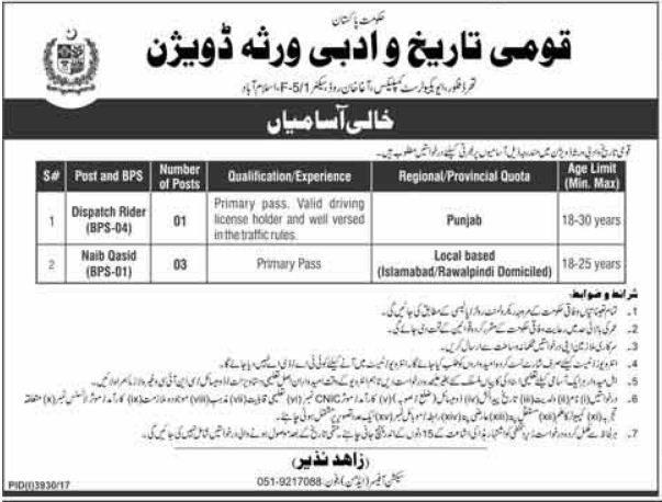 Latest National History & Literary Heritage Division Labor Posts Islamabad 2025