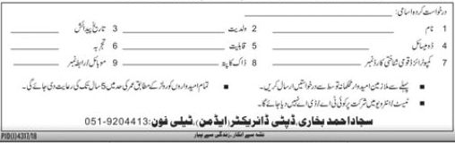 Apply as per details in job advertisement. Login to view further details of how to apply via https://www.jobz.pk online.