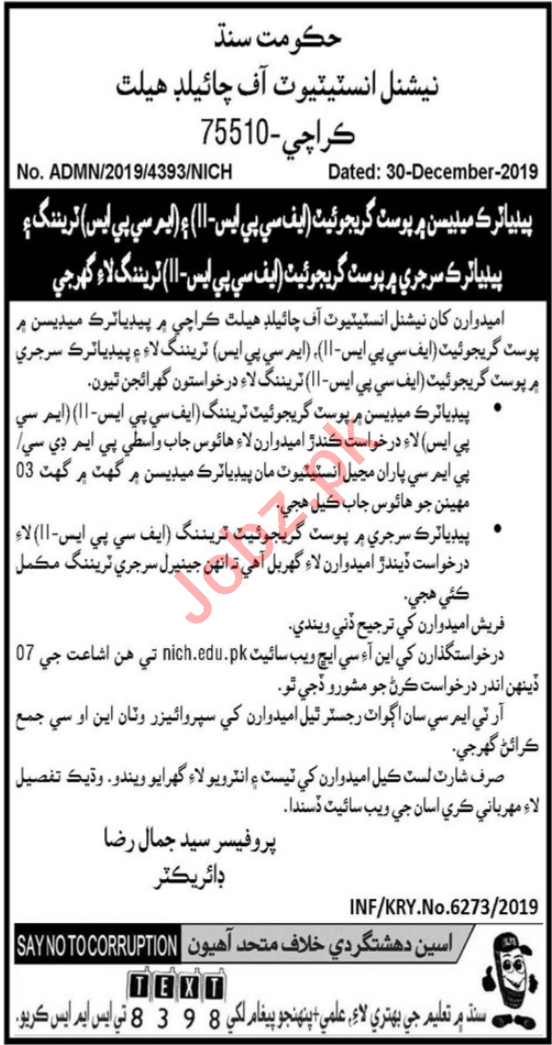 Vacancies in National Institute of Child Health Advertisement January 2020