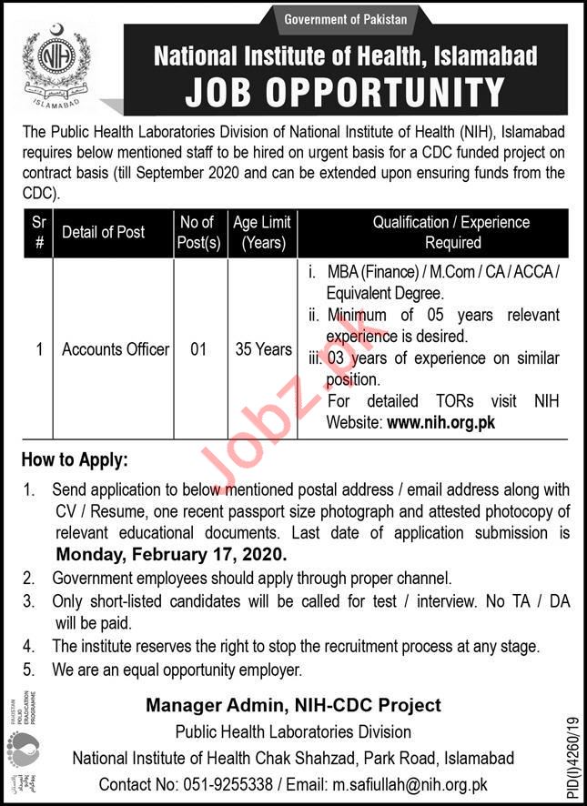 Latest National Institute of Health NIH Accounting Posts Islamabad 2025