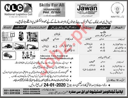 National Vocational & Technical Training Commission NAVTTC Government of Pakistan National Logistics Cell NLC offered admissions for courses in Heavy Machinery Operator, Aluminum Fabricator, Advance Survey, Plumbing & Solar Assembling. Read newspaper ad for exact details.