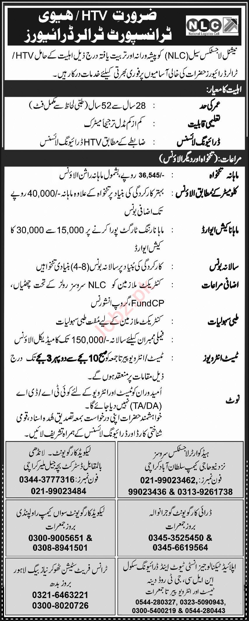 National Logistics Cell NLC jobs advertisement dated about 13 November 2022 in daily Express Newspaper invites application for the vacant post of driver and htv driver in Lahore, rawalpindi, gujranwala and karachi Punjab Pakistan. Preferred Education is Matric etc.