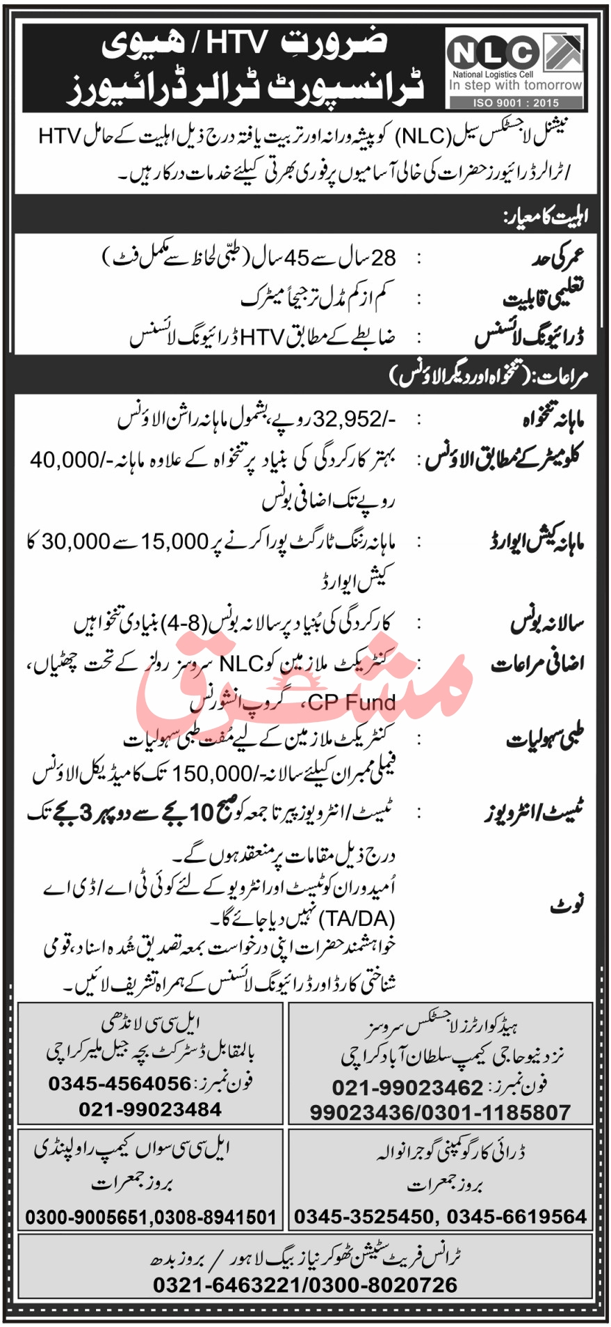 Vacancies in National Logistics Cell NLC Advertisement June 2021