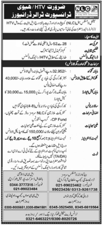 Latest National Logistics Cell NLC Driving Posts Lahore 2025