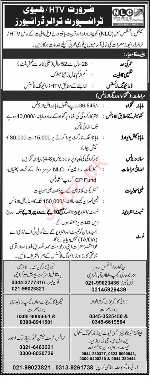 Latest National Logistics Cell NLC Driving Posts Rawalpindi 2025