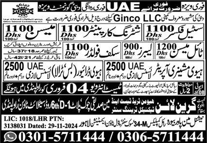 Vacant posts including mason, shuttering carpenter, labor, tile mason, scaff folder, heavy machinery operator, heavy driver and steel fixer are announced in National Manpower Bureau Abu Dhabi, abu dhabi UAE as per 4 February 2025 advertisement in daily Express Newspaper. Middle, Matric and Intermediate etc. educational qualification will be preferred.
