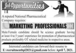 Vacancies in National Pharmaceutical Firm Advertisement April 2021