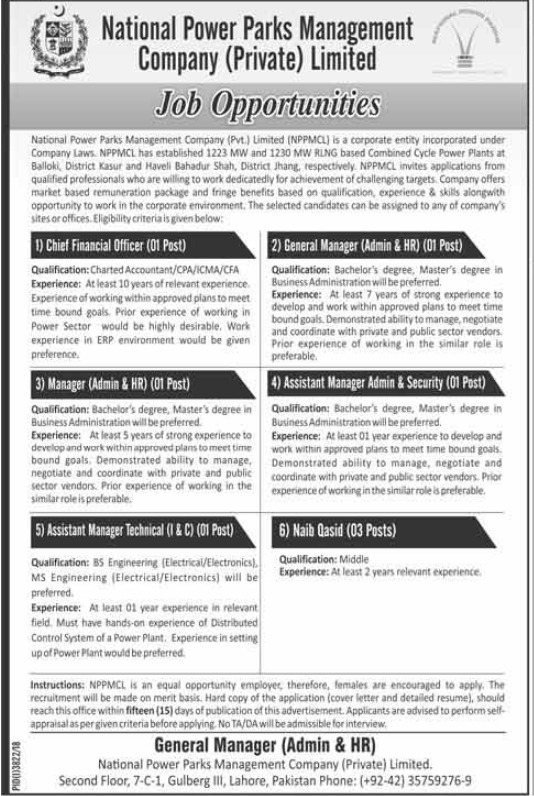 Latest National Power Parks Management Company Pvt Limited Management Posts Lahore 2025
