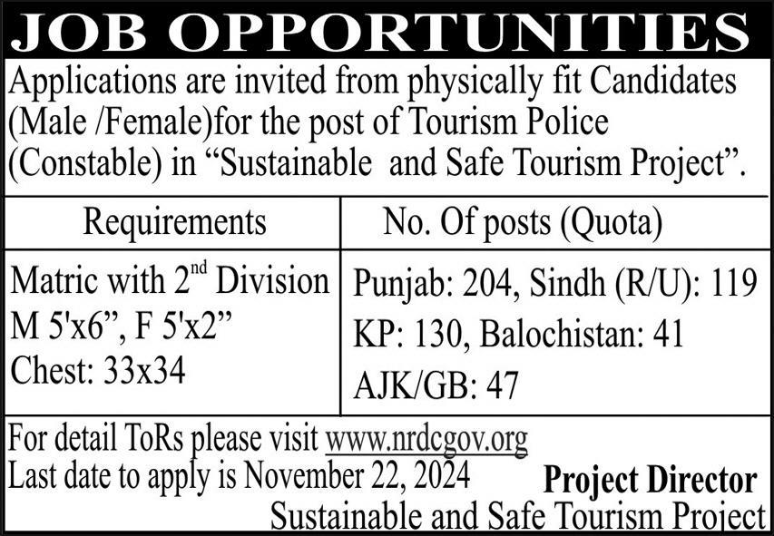 National Research and Development Council NRDC Quetta, quetta Balochistan Pakistan invites applications from eligible candidates for the post of tourism police constable as per advertisement of November 10, 2024 published in daily Express Newspaper. Persons with Matric etc. education can apply.
