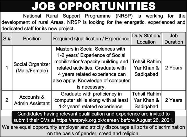 Vacancies in National Rural Support Programme NRSP Advertisement August 2021