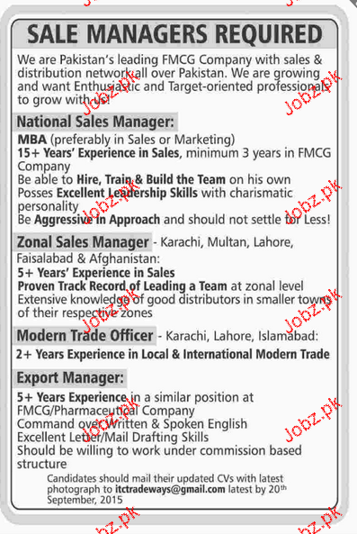National Sales Manager, Zonal Manager Job Opportunity