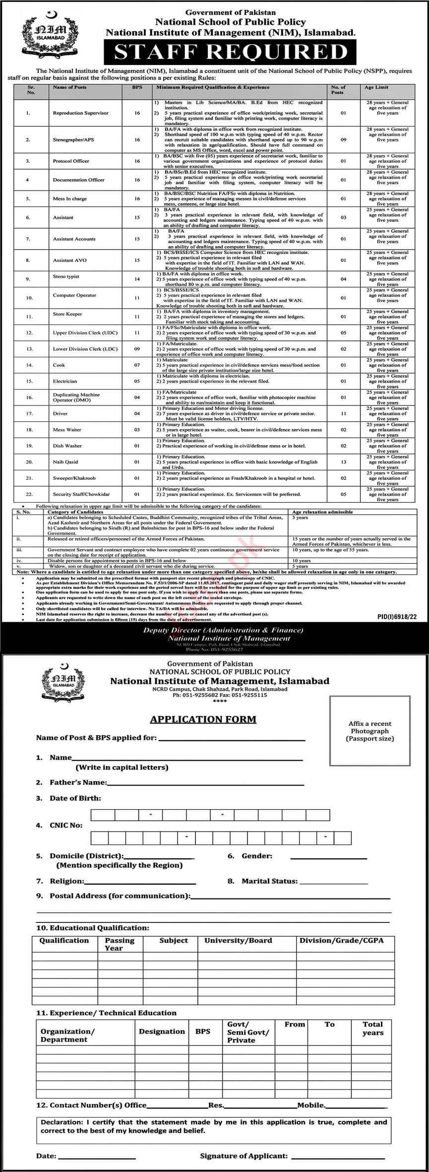 Vacant posts including documentation officer, cook, mess incharge, protocol officer, naib qasid, duplicating machine operator, htv driver, assistant, aps, ldc, security staff, store keeper, reproduction supervisor, computer operator, udc, mess waiter, stenotypist, upper division clerk, sweeper, stenographer, dmo, khakroob, chowkidar, driver, ltv driver, lower division clerk, electrician, dish washer, assistant avo and assistant accounts are announced in National Institute of Management Islamabad, islamabad Islamabad Pakistan as per 14 May 2023 advertisement in daily Express Newspaper. Persons with B.ed, Bachelor, Intermediate, Master, MA, Primary, BA, Middle and Matric etc. education can apply.