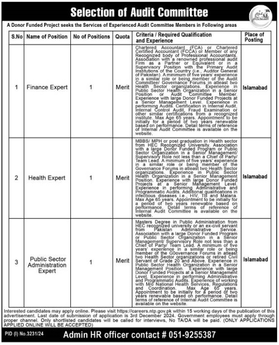 National TB Control Program NTP invites applications for job positions advertised in daily Nation dated 14 November 2024 for following vacancies in Islamabad, islamabad Islamabad Pakistan.