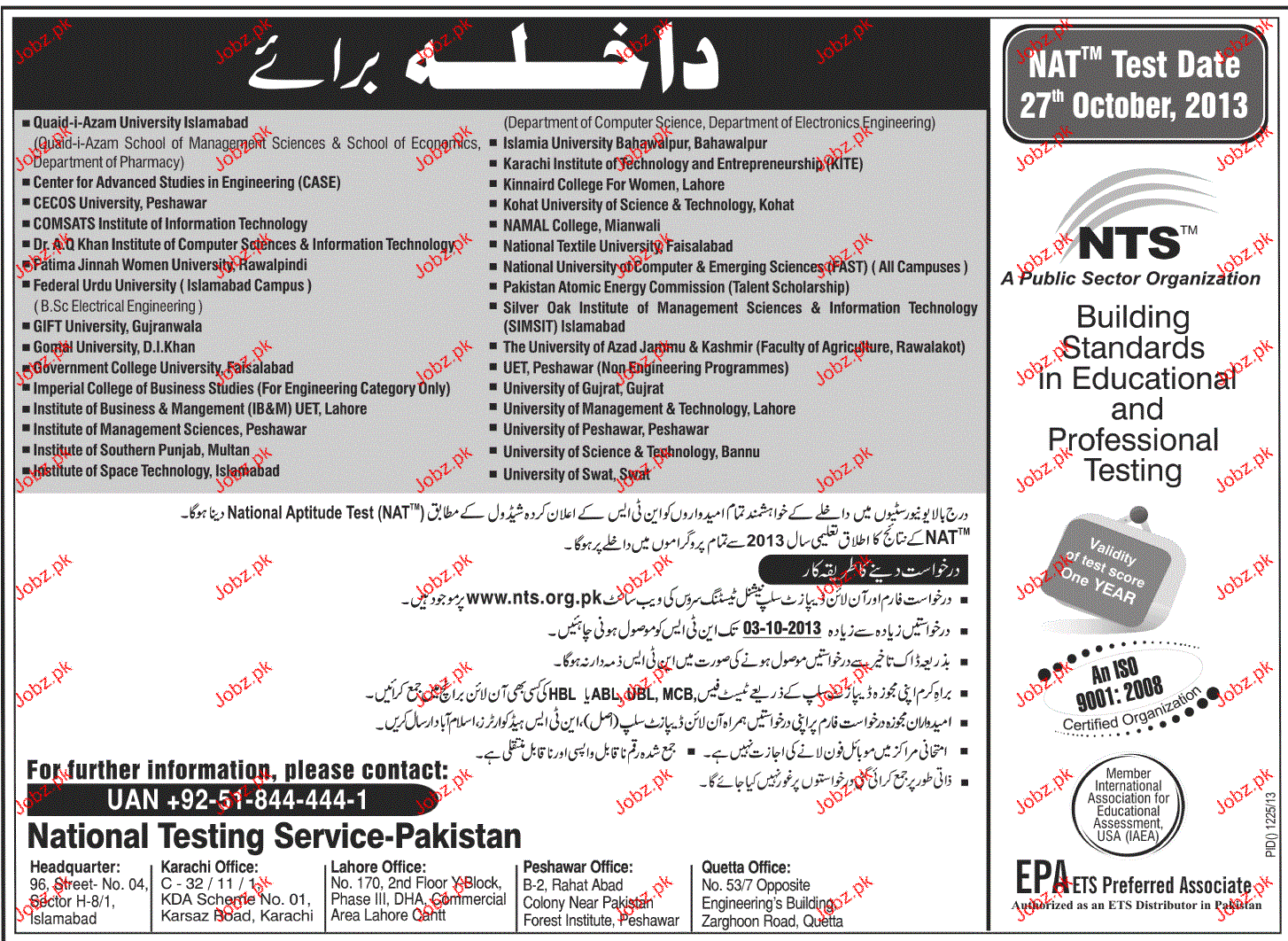 National Testing Serivce Pakistan Admission in Courses