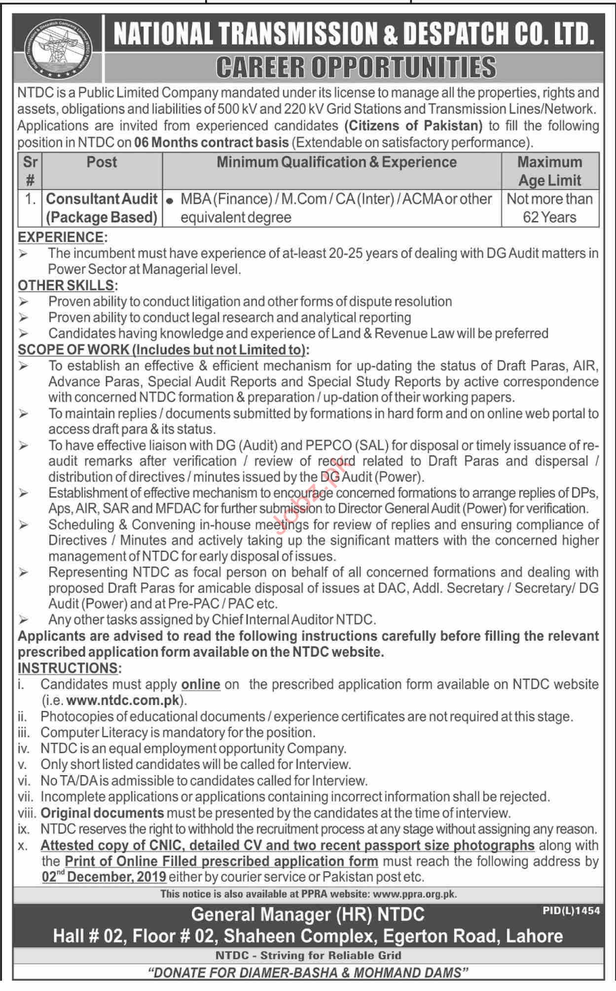 Vacancies in National Transmission and Despatch Company NTDC Advertisement November 2019