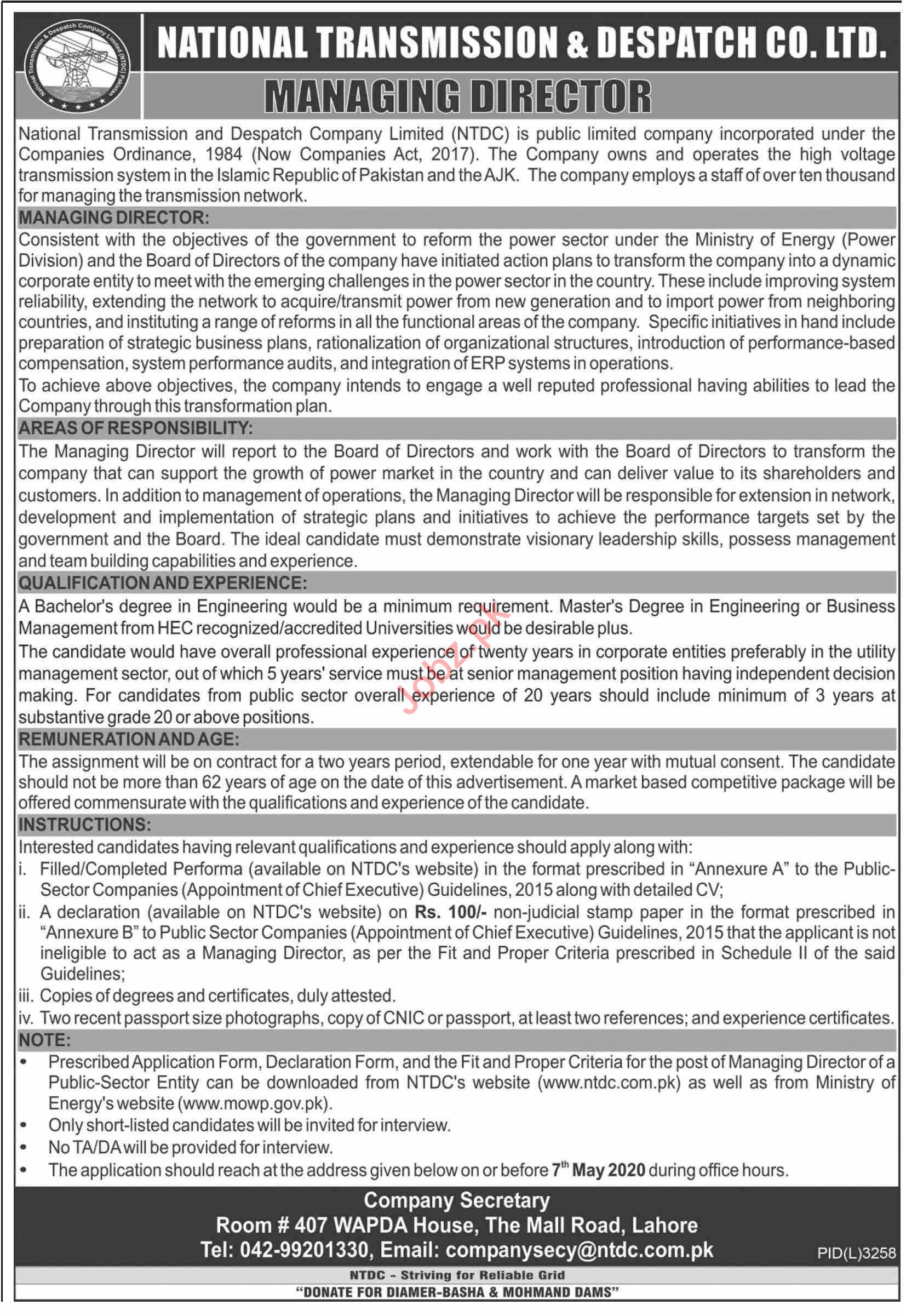 How to Apply on National Transmission and Despatch Company NTDC Job Advertisement