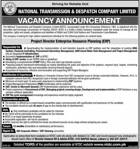 National Transmission & Dispatch Company Jobs