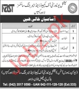 Vacancies in National University of Computer & Emerging Sciences Advertisement November 2020
